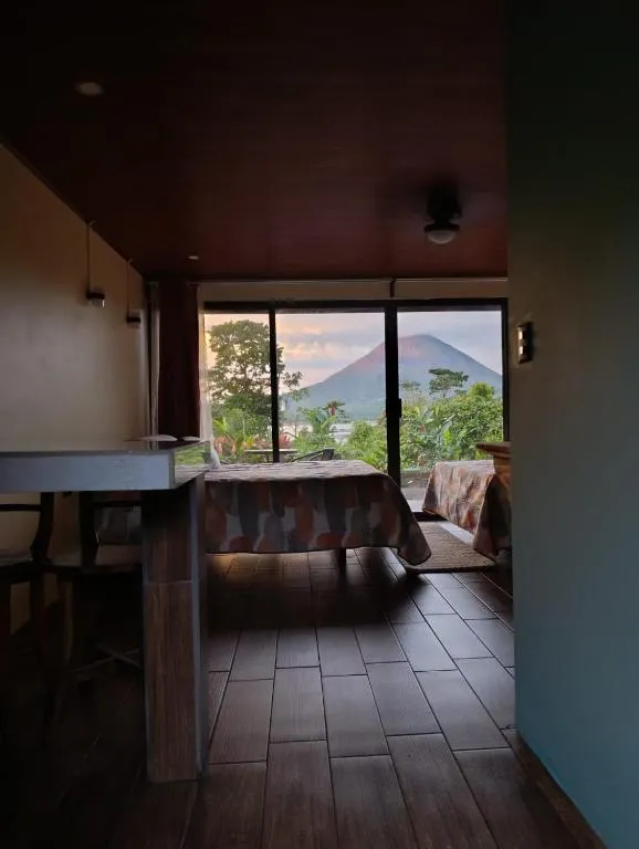 Tuvimos mucha lluvia, así que no vimos mucho del volcán, pero aún así teníamos excelentes vistas desde nuestra habitación.