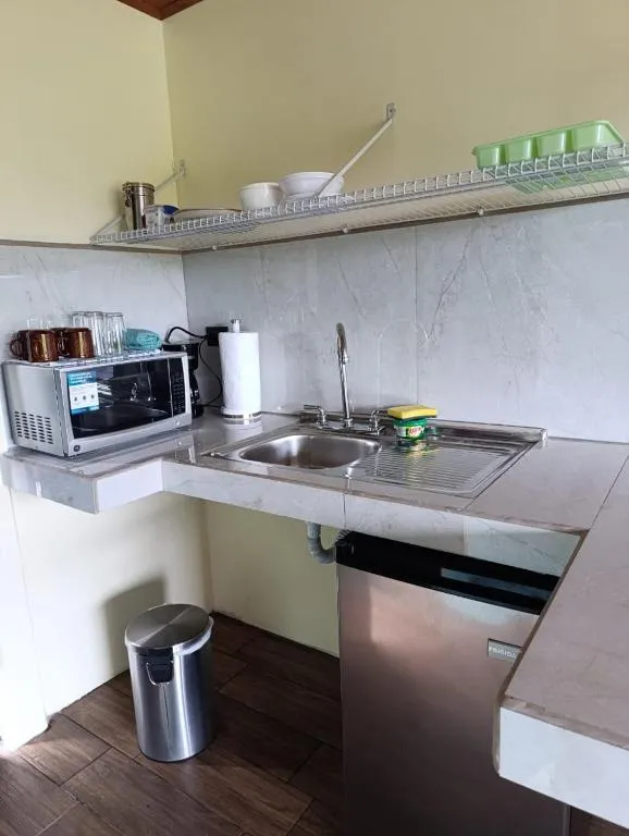El restaurante sirve buena comida (¡la comida de San Valentín fue excelente!) y cócteles. Las vistas del lago y del volcán desde allí también son maravillosas.